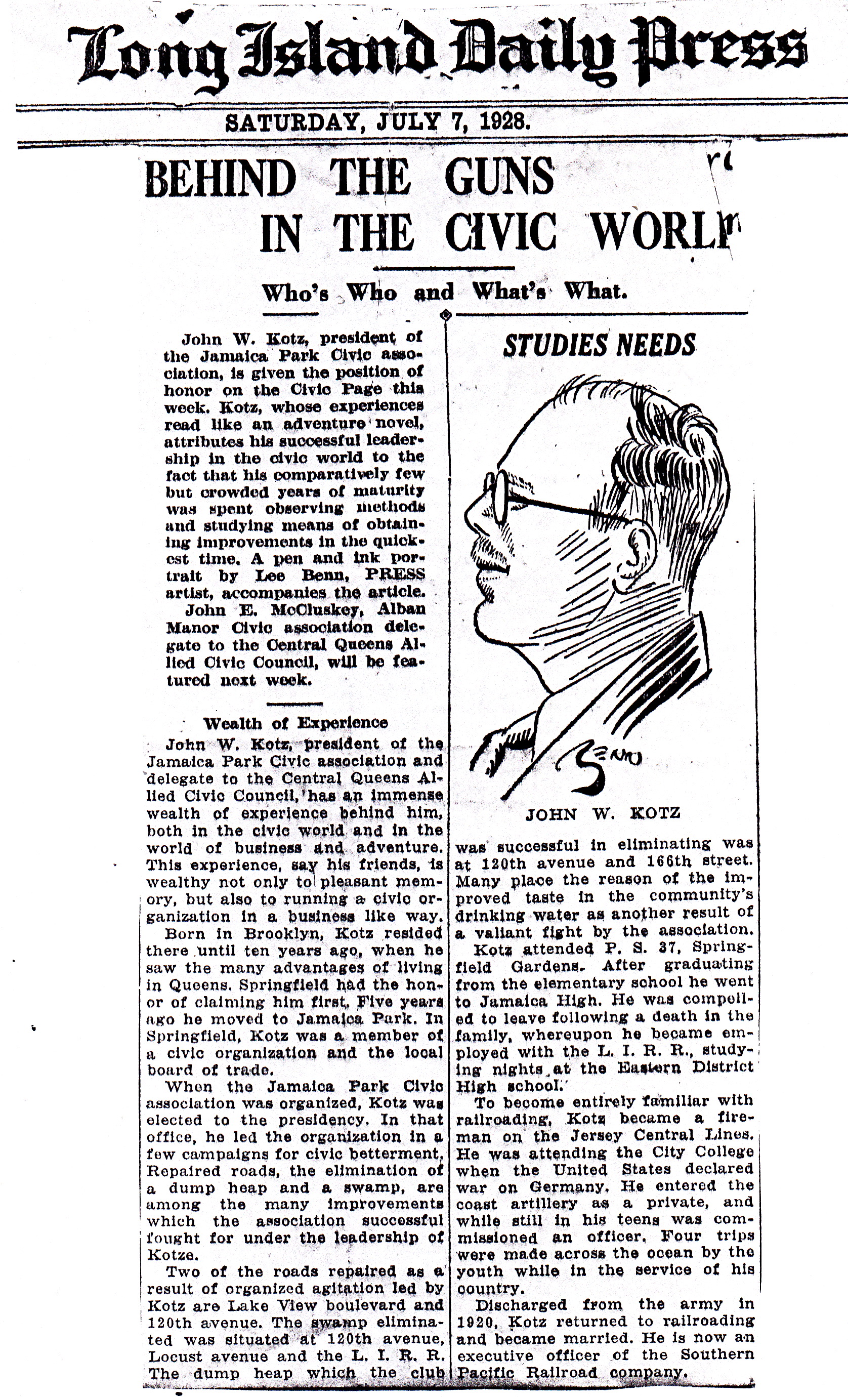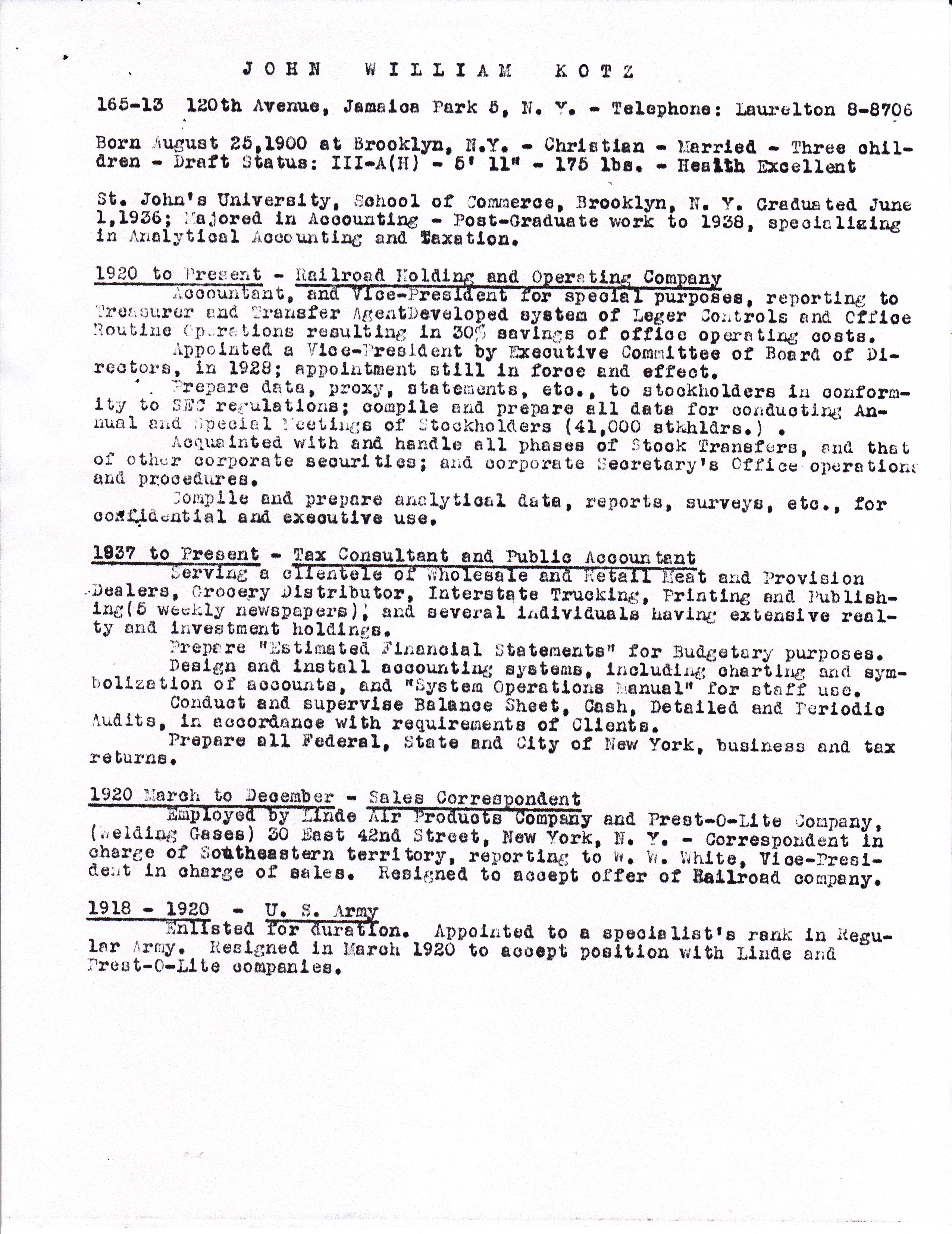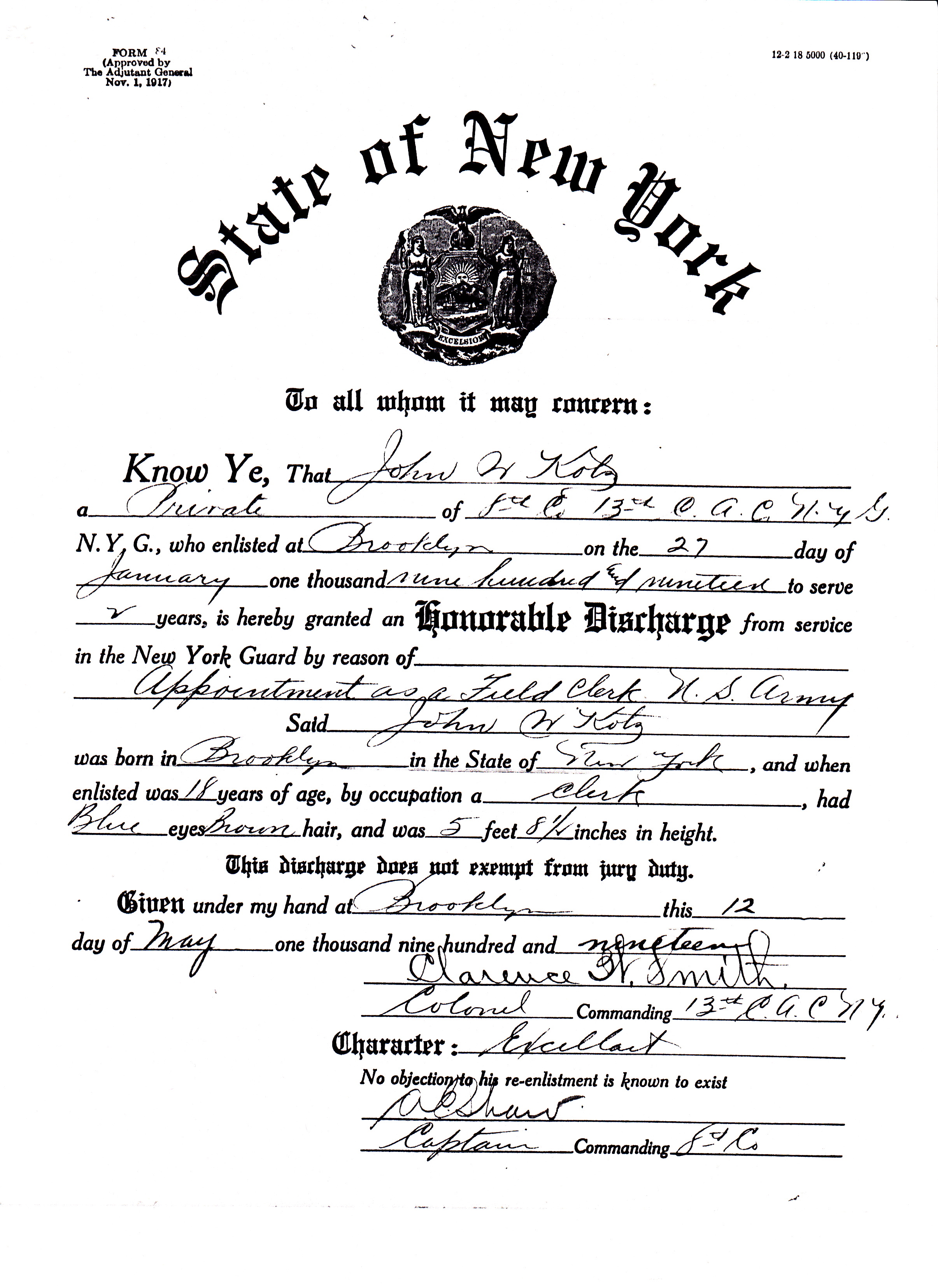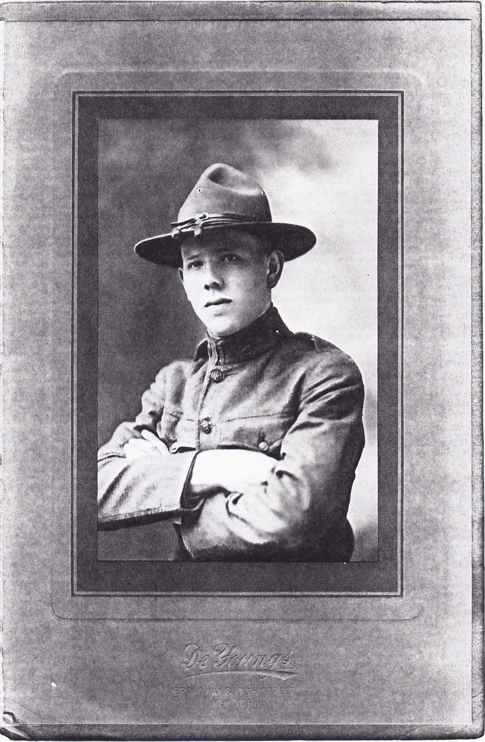 After graduating from elementary school, John went to Jamaica High School but had to quit to earn money to support the family when his father died in December 1916. On January 27, 1917, when he was only 16 years old, he enlisted as a Private in the New York Guard (what is now the New York National Guard).