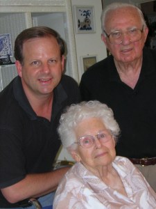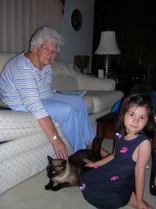 Here are some photos of Nonnie from my trip there in 2004. The first with me and Poppie, of course, and the second with her friend, Honey.