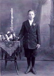 And here’s his Catholic Confirmation picture taken when we was 12 years old. (I actually have the prayer book that you see John holding in the picture. It was originally his mother Emma’s German prayer book, but she gave it to her son on this occasion.)