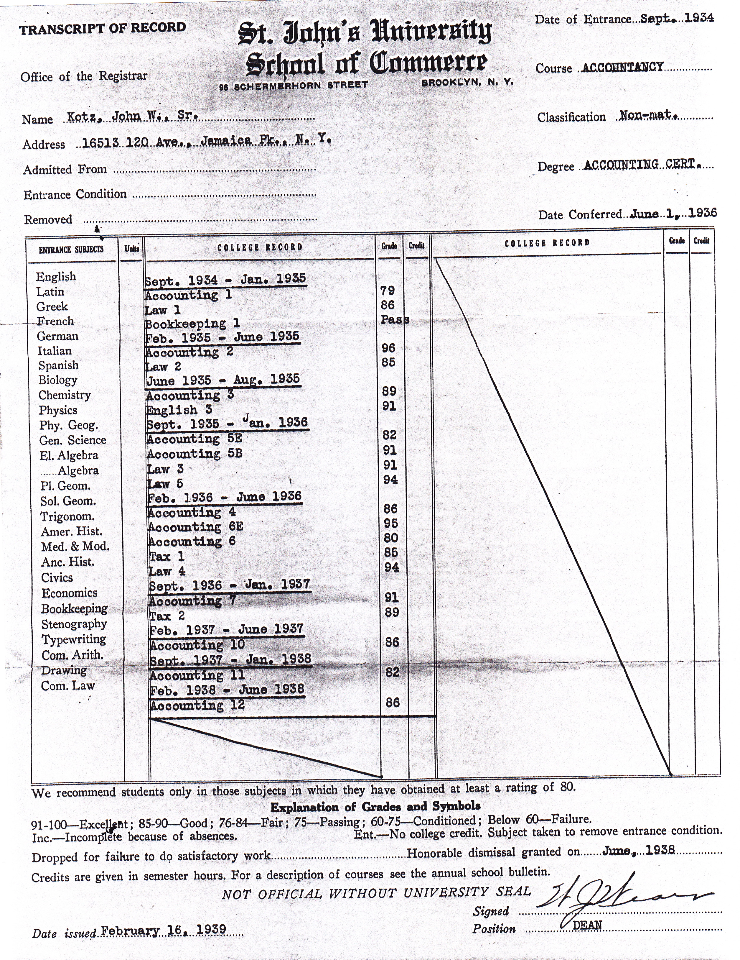Nonnie attended Catholic schools in her youth. She was a very good student. In 1935, when she was 14 years old, her teacher at Our Lady of Wisdom Aacdemy in Queens, where she went to high school, presented her with a Modern Library First Edition of Ben Hur for her “effort and achievement in English.”