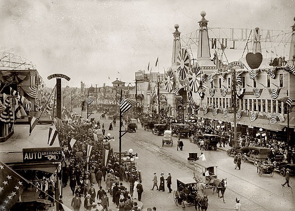 Here’s a picture of Luna Park at Coney Island taken in 1907, right around the time the photograph above was taken of John with his grandmothers.