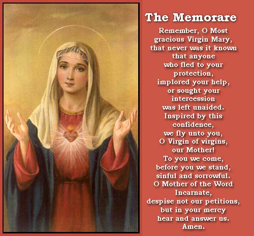She always asked about you and she knew how difficult it was for me hardly ever seeing see you (the last time I saw you was for a half hour right after she died in January of the next year). So she taught me a prayer soon before she passed away called the Memorare, telling me I should never give up hope.