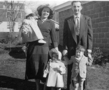 Here’s a picture of Nonnie and Poppie with their first three children (Nonnie is holding your Aunt Denise. Standing in front are Valerie and Philip, Jr.)