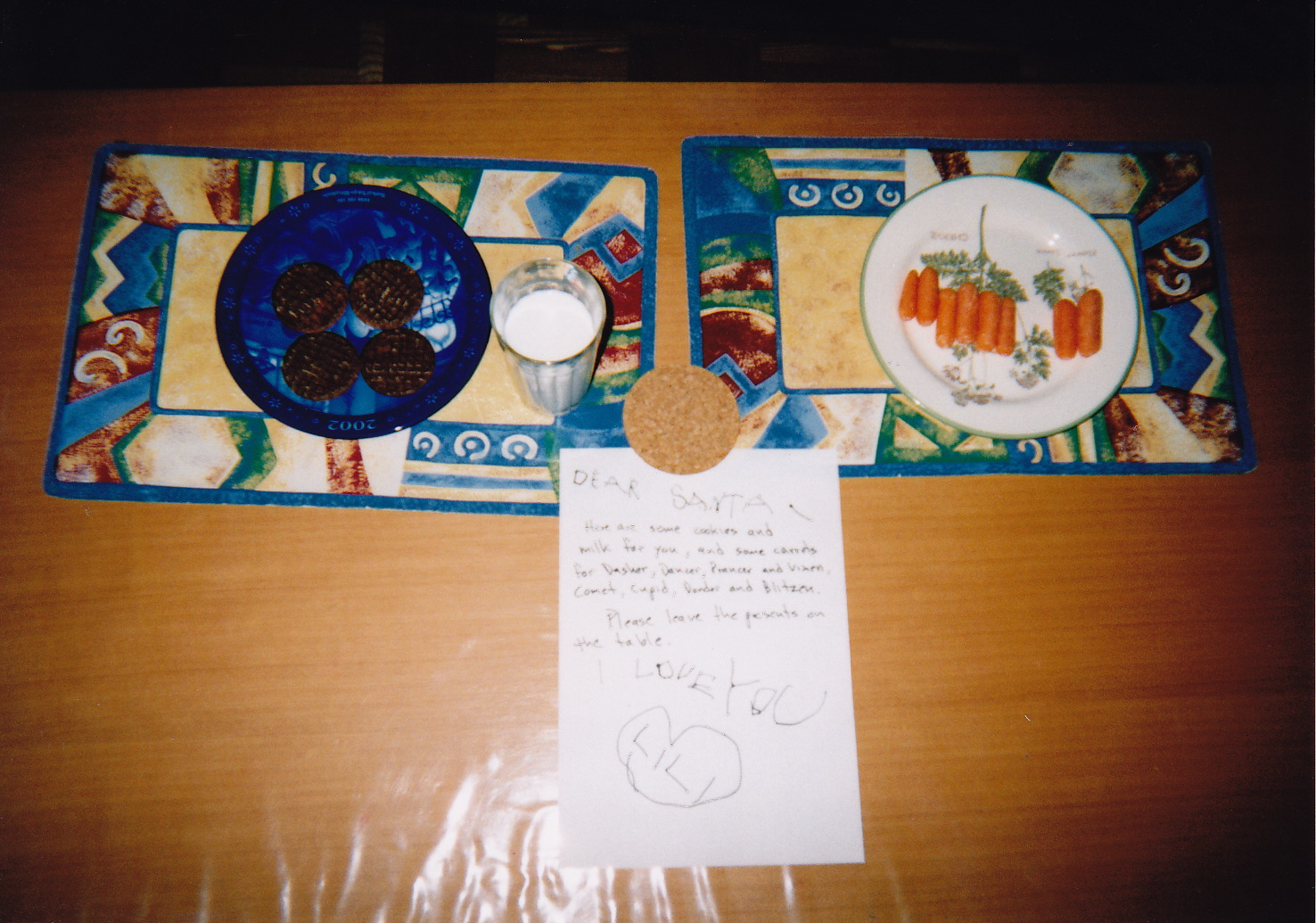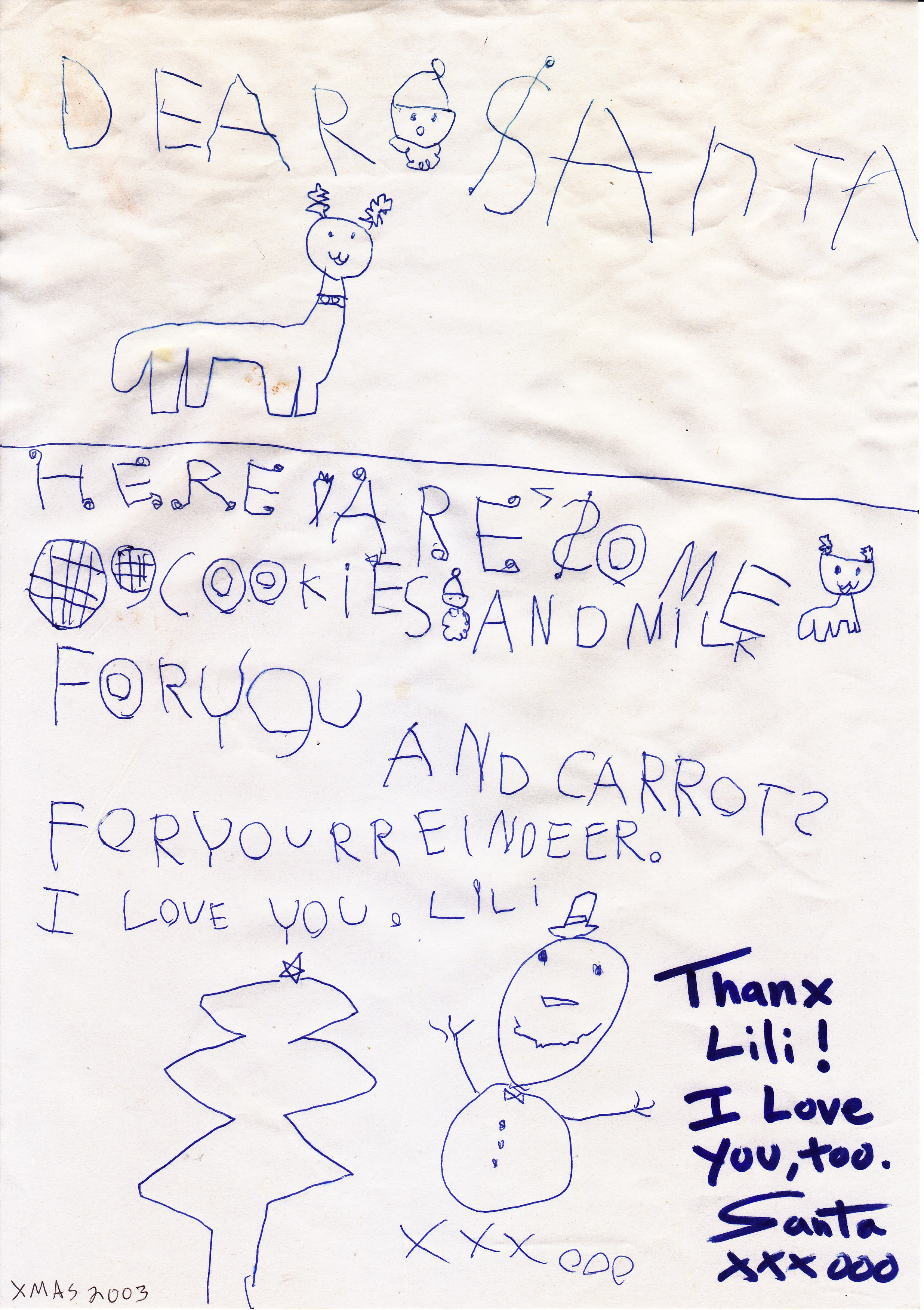 On Christmas Eve we sat down and wrote our usual note to Santa to leave with the milk and cookies for him and carrots for the reindeer.