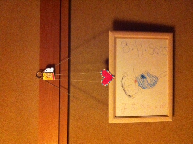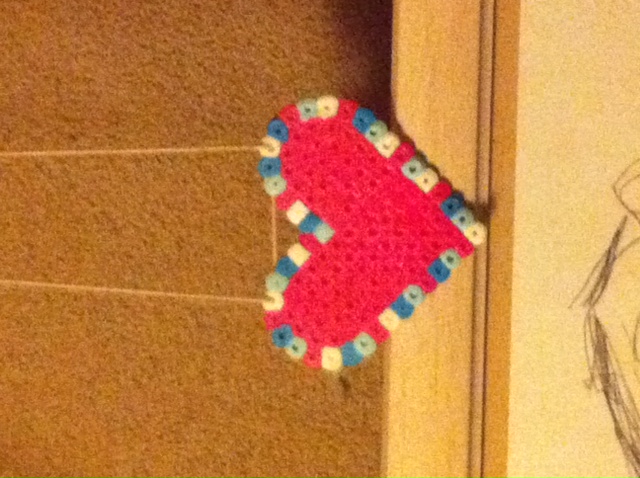 That Christmas we also made hearts for each other with this plastic bead kit Nancy gave you at the party. After you arrange the little beads, you melt them together with an iron to make one piece. We made two hearts, and you kept one and I kept the other. My heart is still hanging above the bed. I wonder if you still have yours and if it reminds you of your Dad the way my heart reminds me of you.