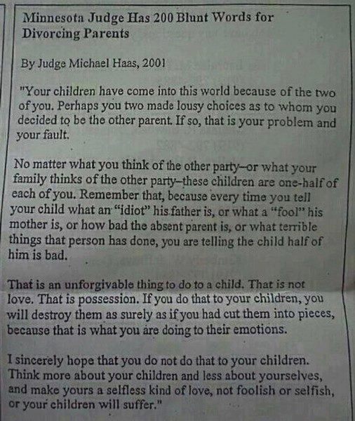 This is why, after she and I split up. I never said anything bad to you about your mother.