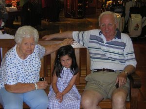 As I guess you know, both your Poppie and Nonnie served in the military during World War II. Poppie was in the Army Air Corps (now the Air Force) and rose to the rank fo Major. Nonnie was in the WACs (Women’s Army Corp) and served as First Lieutenant.